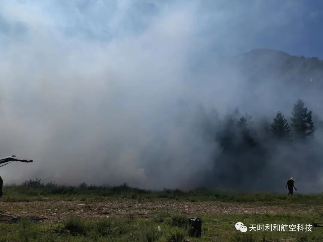 夏季清晨的第一縷霞光灑落在五臺(tái)山林區(qū),山上白霧埋陰壑,丹霞助曉光,林中濕潤的空氣隨著霞光照射緩緩上升,此時(shí)無人機(jī)拖著長長的煙霧尾巴,從林區(qū)的低處飛過,無人機(jī)借助清晨上升的空氣使機(jī)身噴出的煙霧快速的飄散出方圓幾公里,隨著自然風(fēng)的飄散彌漫在樹木周圍,與大自然的霧氣完美融合,形成云興霞蔚的壯觀景象;